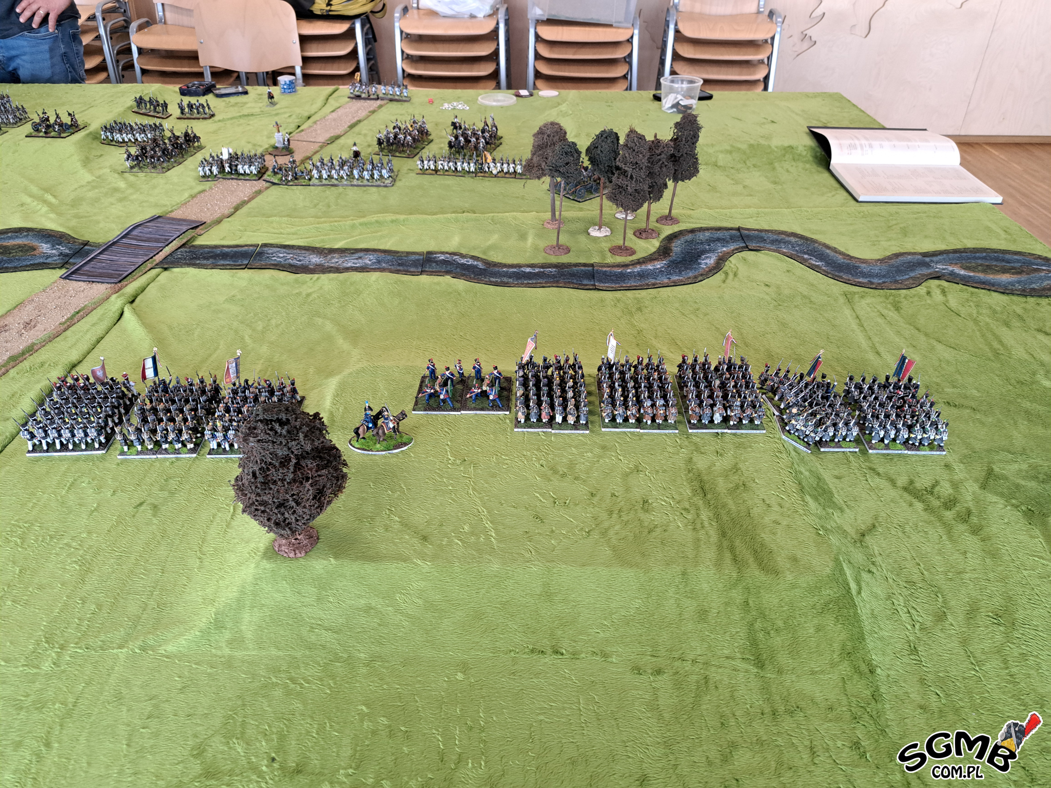 Tura 7. Centrum Francuzów, podobnie jak Austriackie rozwinięte w linie. Z tyłu batalion, który pomylił rozkazy i Kawaleria, której wkład w bitwie może zostać pominięty.