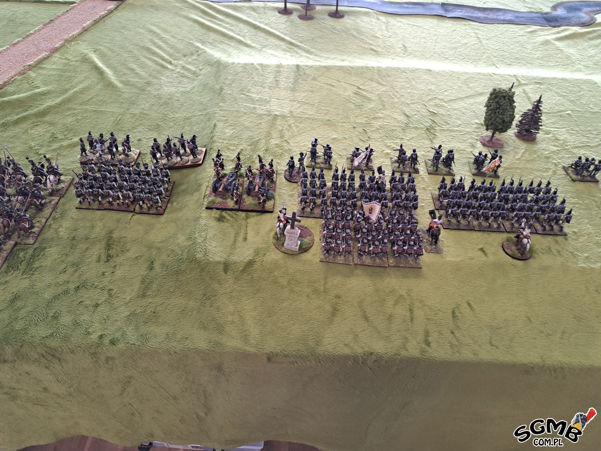 Rozstawienie wojsk Francusko-Polskich w centrum przed bitwą. Deployment of Franco-Polish troops in centre before the battle.