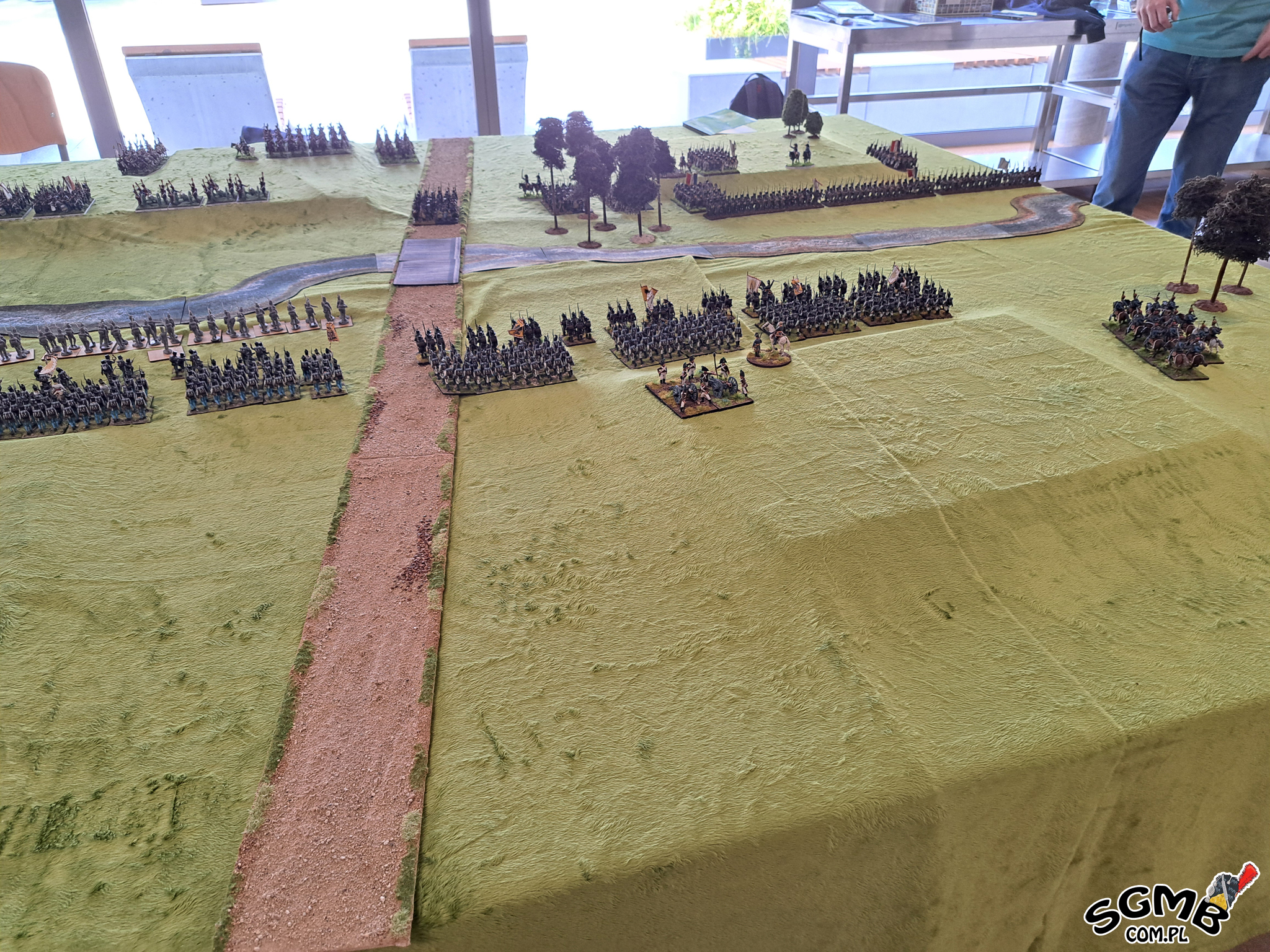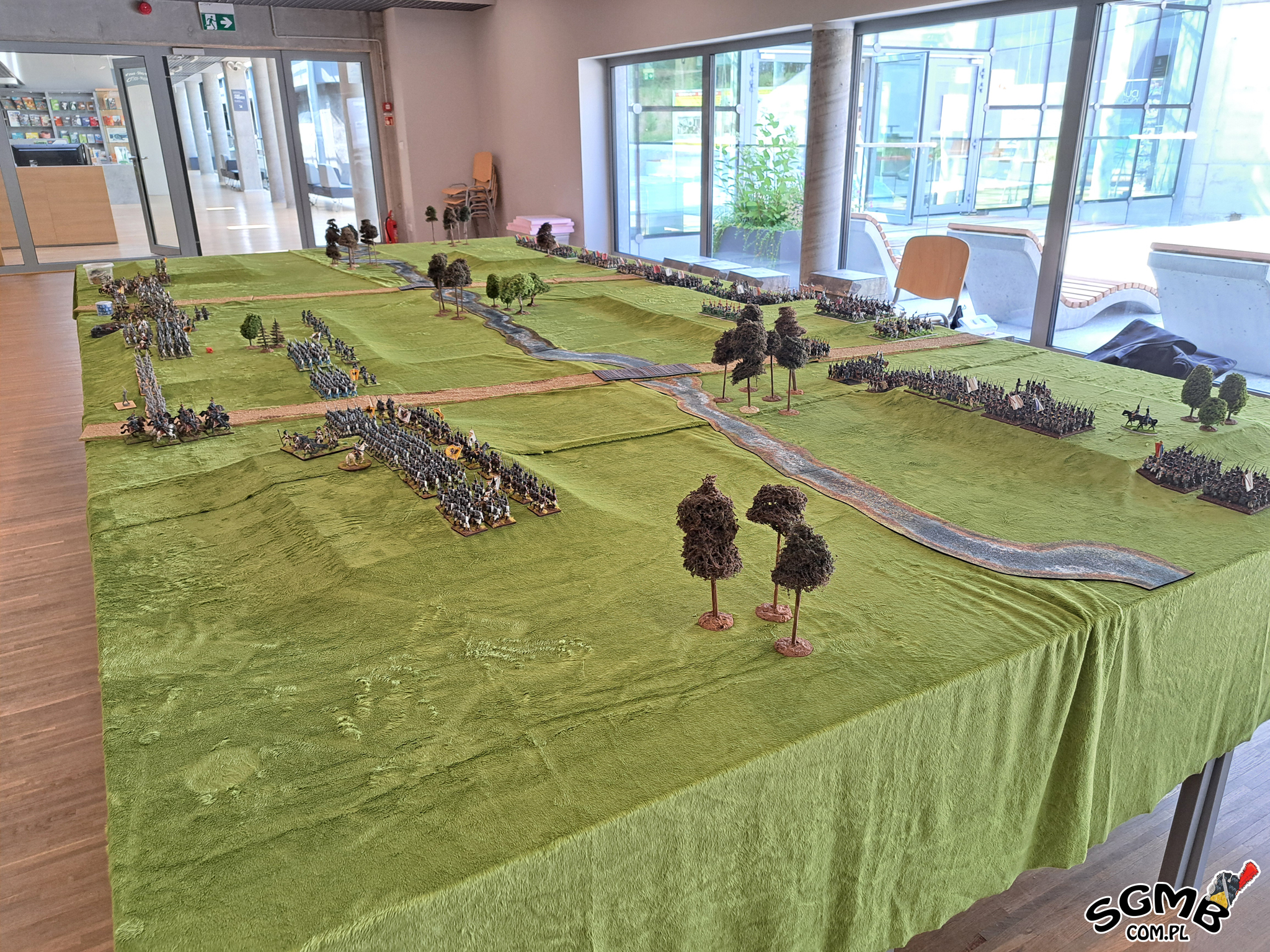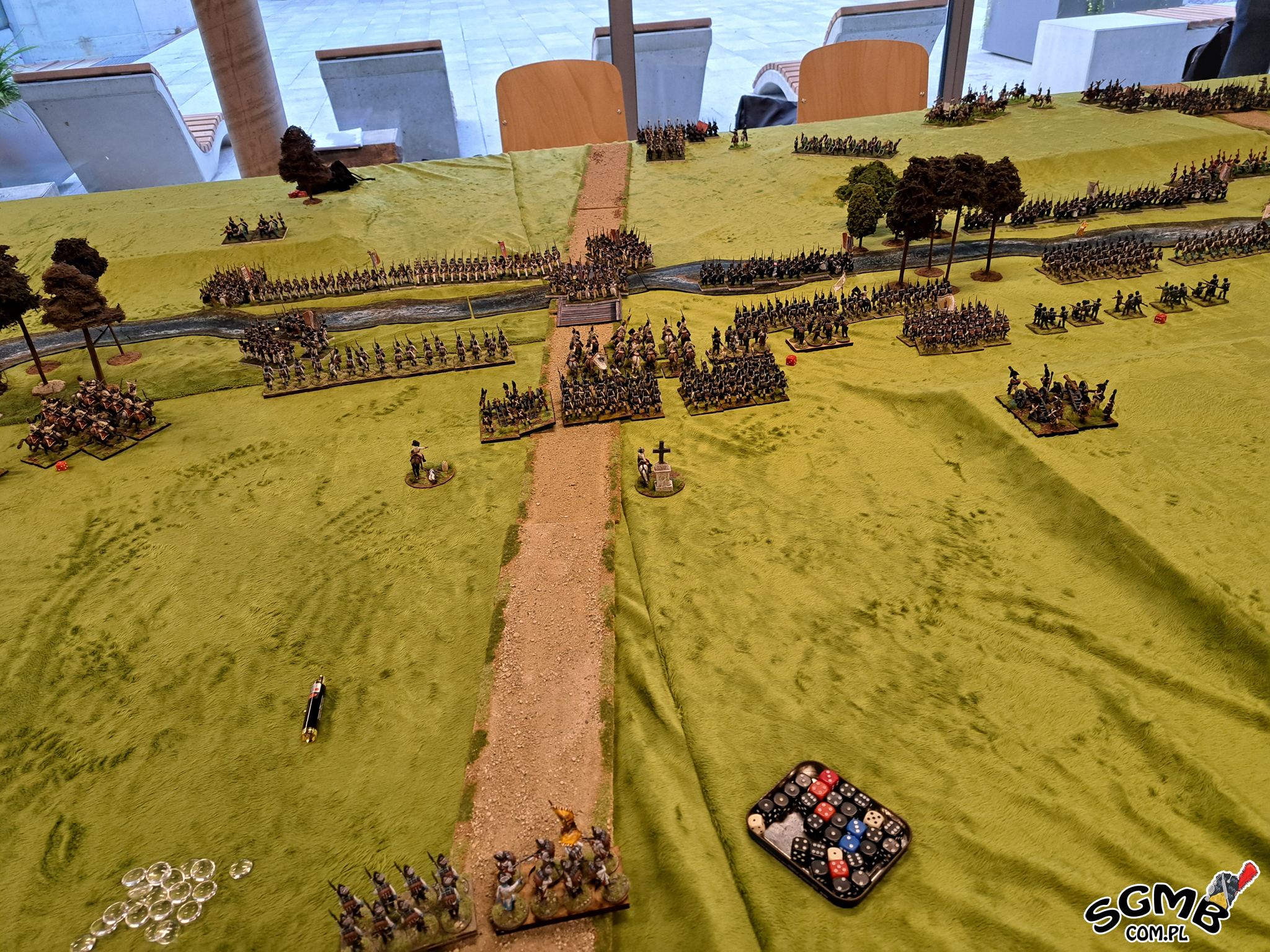 Tura 7. Centrum Francuzów, podobnie jak Austriackie rozwinięte w linie. Z tyłu batalion, który pomylił rozkazy i Kawaleria, której wkład w bitwie może zostać pominięty. Turn 7. The French center, like the Austrians, was deployed in lines. In the rear, a battalion that had confused its orders and cavalry whose contribution to the battle could be overlooked.