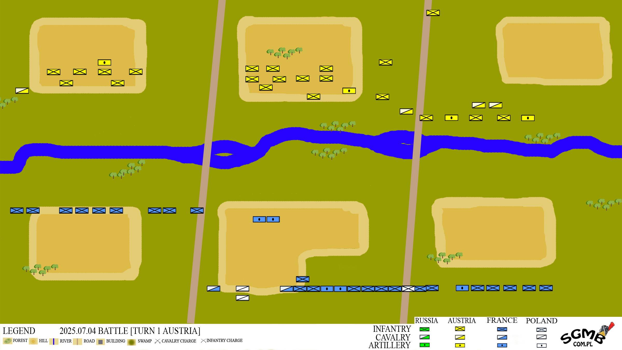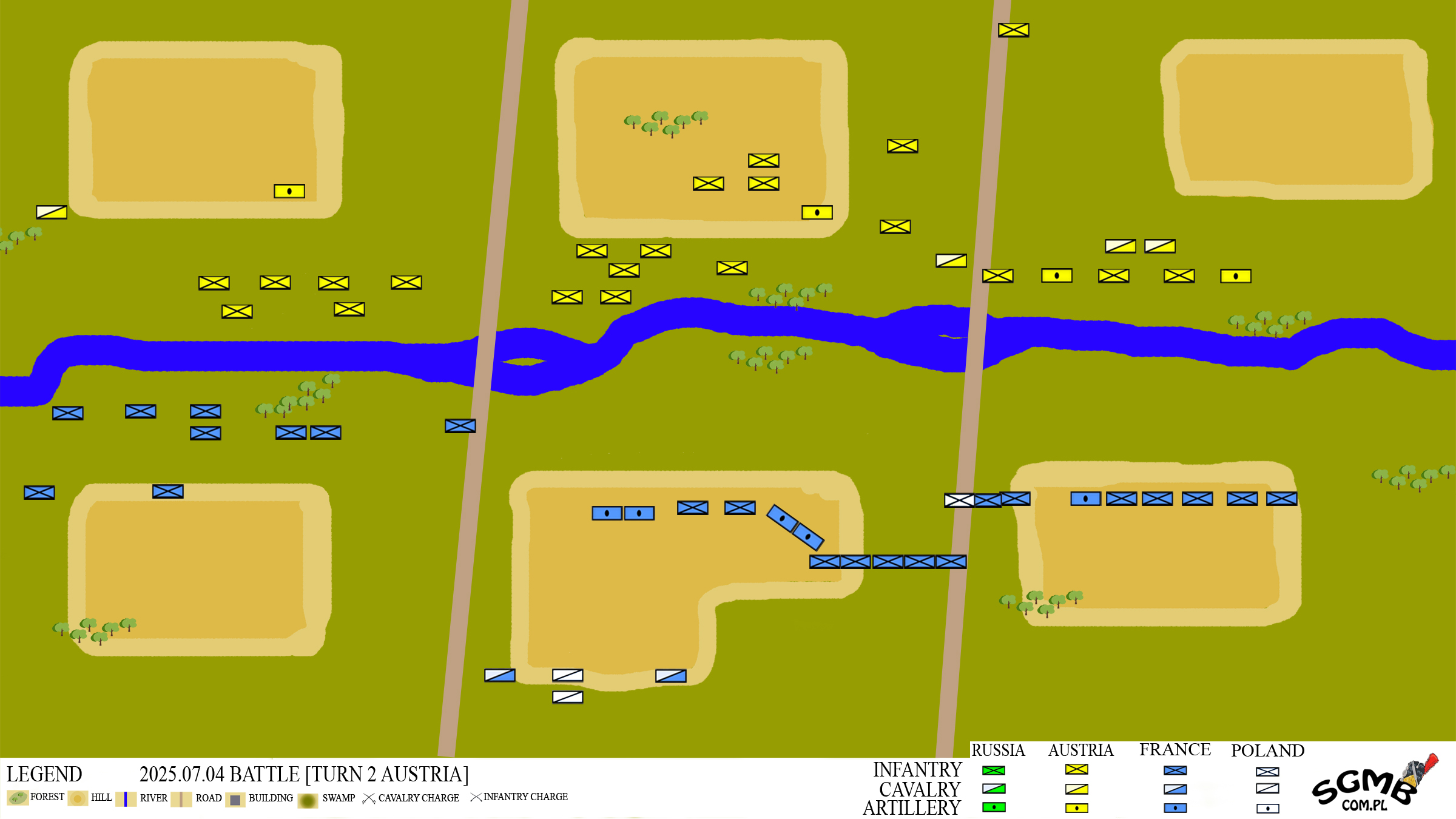 Tura 2. Jak widać austriacy posuwali się szybciej. Turn 2. As you can see, the Austrians were moving faster.