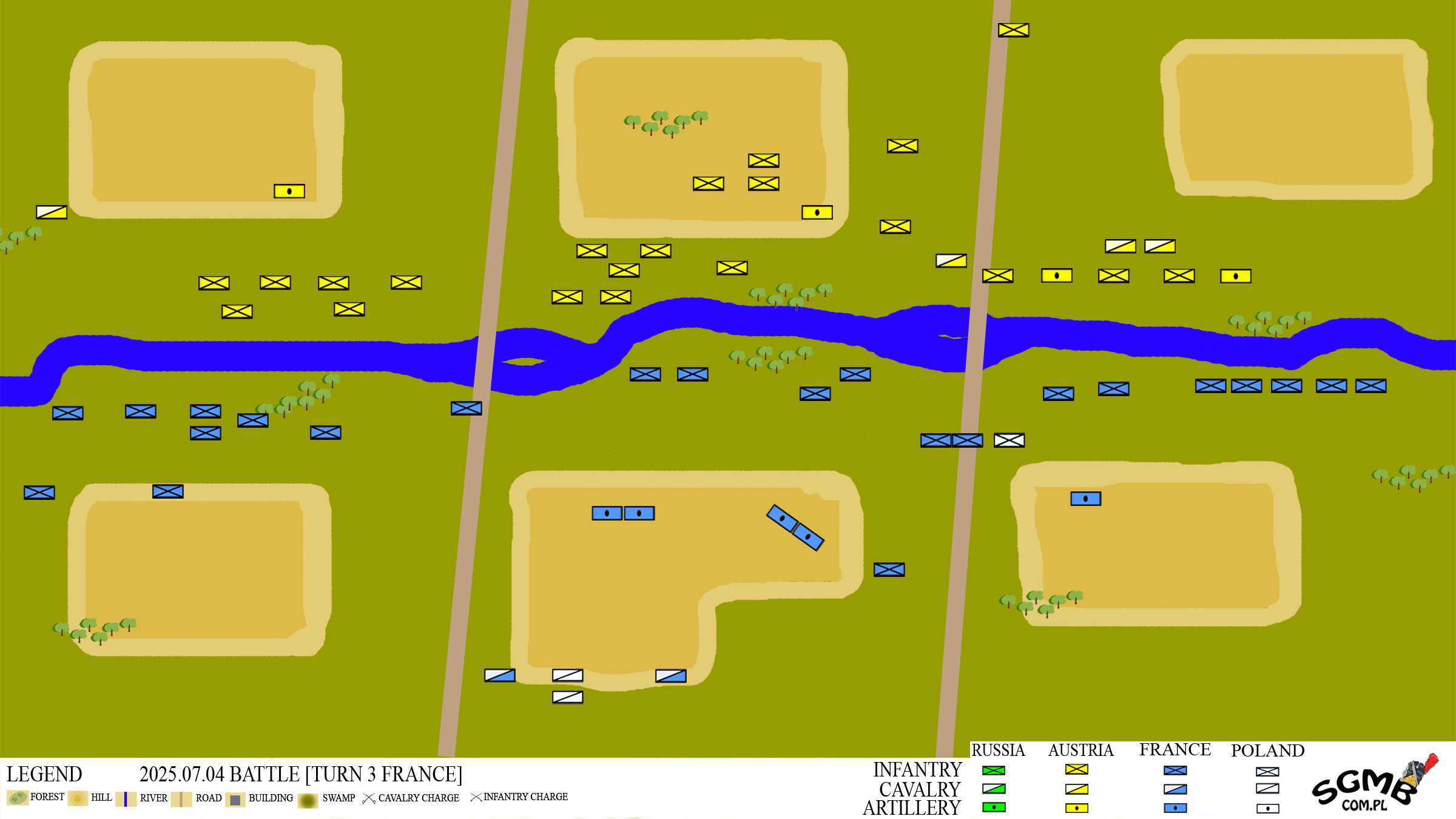 Tura 3. Sytuacja na koniec tury. Rzeka podzieliła obie armie.